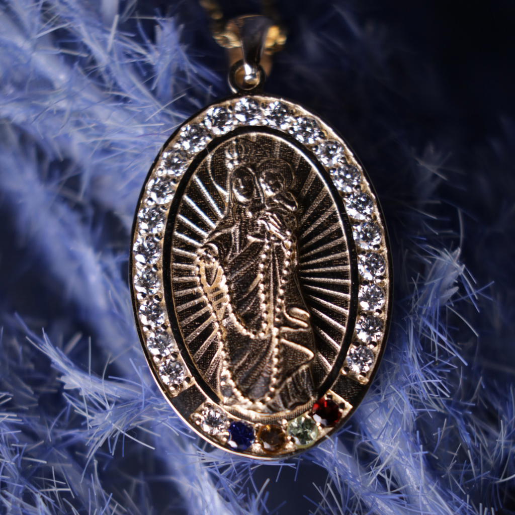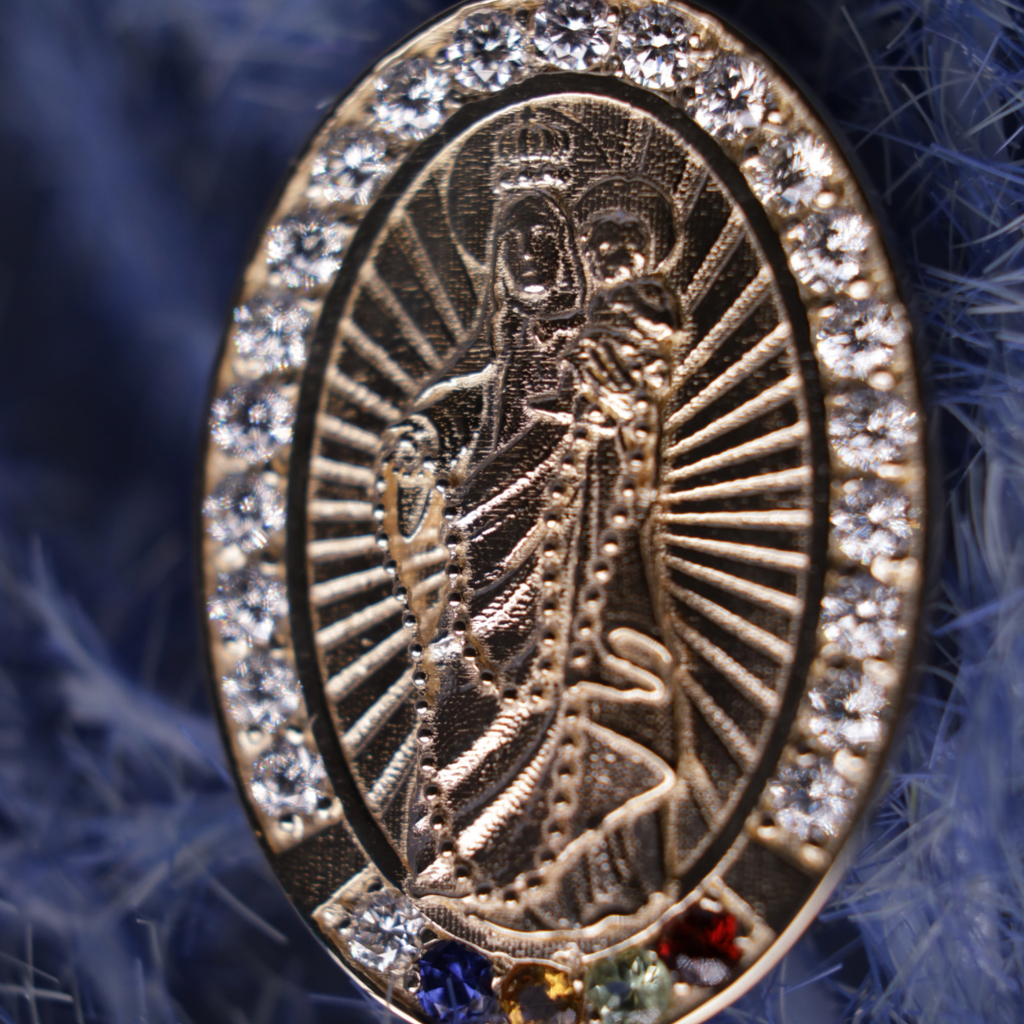 | DETAIL | 5 Birthstones with Madonna and Child |