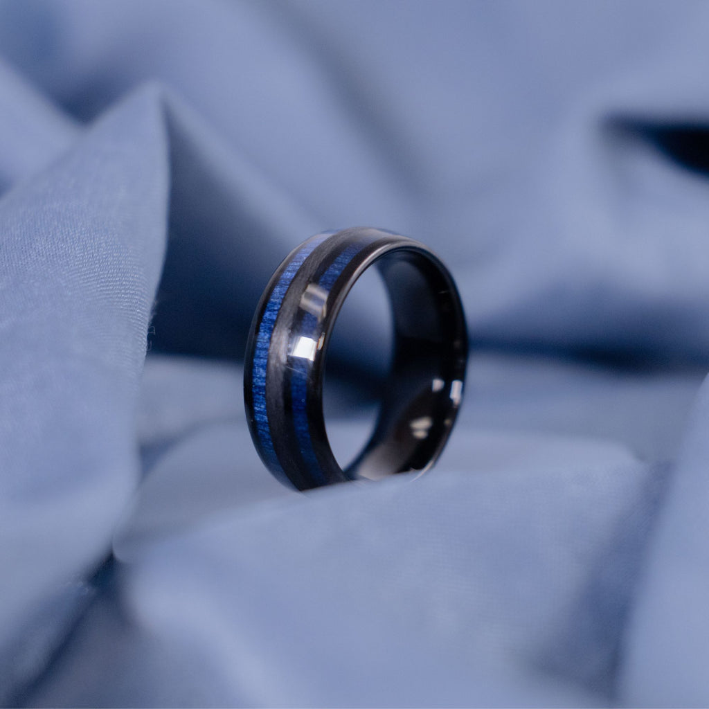 Tungsten Blue Opal Half Dome with Black Line - is backordered and will ship as soon as it is back in stock.