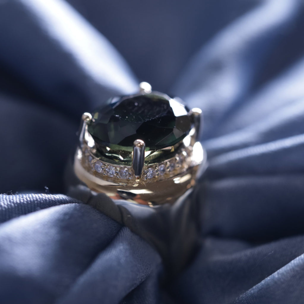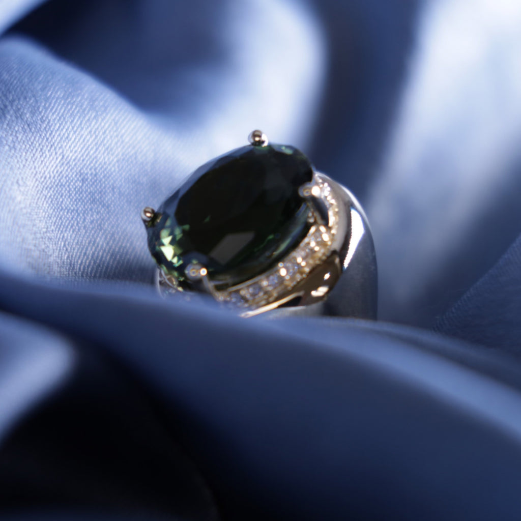Green Tourmaline with Diamond